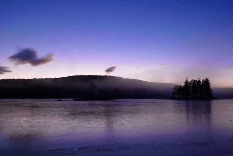 Jeg finner hun oppe ved ryggen sittende og lese med solen skinnende ovenfor. Jeg er noe lettet, men erkjenner nok at fantasien min løp noe løpsk og. Nå er det helt nydelig ute og vi blir sittende lenge og nyte været på ryggen med utsikt mot Spania. Når solen forsvinner ned bak åsen i vest går vi tilbake til hytta, hvor vi fyrer opp i peisen igjen og lager middag.