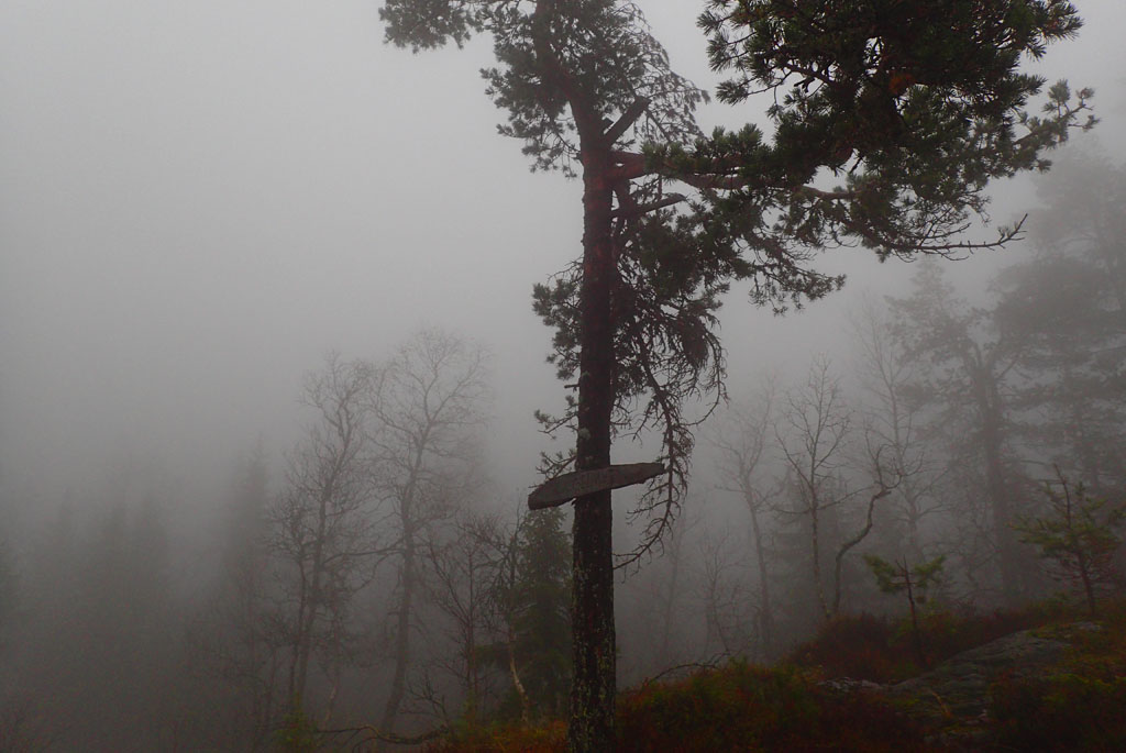 Tåken ligger tungt utenfor vinduene, men likevel må en ut. Å vandre, selv om en ikke kan se. Jeg er på besøk i Seljord, så jeg legger turen opp mot stødige Hattefjell og forsvinner inn i skyene. Før skyene omslynger meg for godt kan jeg fra stien se skyene som river gjennom trærne og fjellsidene. Så dempes lydene, ting blir også dempet i tåken, som landskapet dukker de først fram igjen når det sakte kommer til syne igjen.