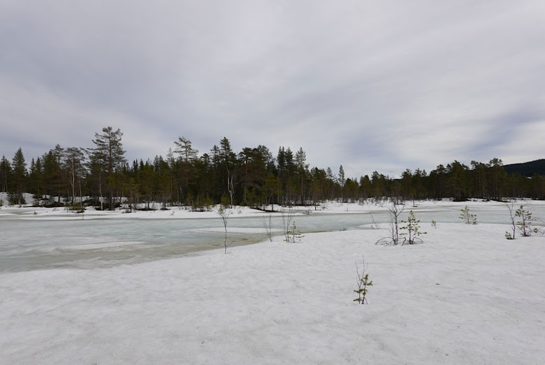 Fortsatt snø over broen ved Trantjernet.